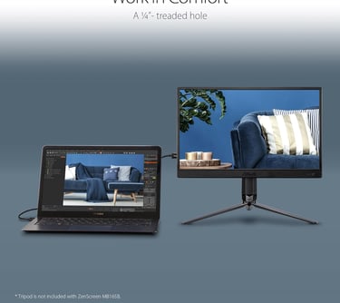 ASUS ZenScreen MB165B 15.6” Portable USB Monitor - HD (1366 x 768), Narrow Bezel, USB-powered, Tripod Mountable, Anti-glare surface, Protective Cover and Stand