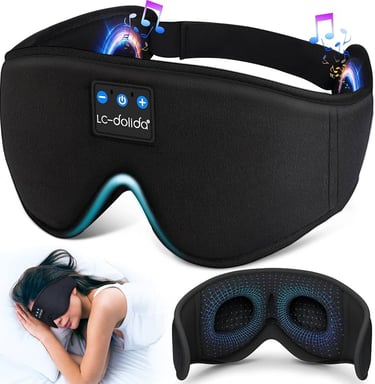 The LC-dolida Sleep Headphones, 3D Sleep Mask Bluetooth Wireless Music Eye Mask, Sleeping Headphones for Side Sleepers Sleep Mask with Bluetooth Headphones Ultra-Thin Stereo Speakers Perfect for Sleeping